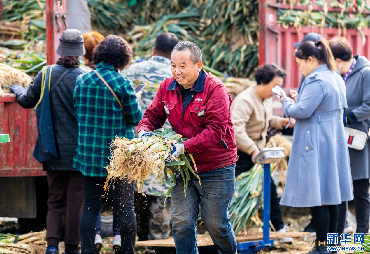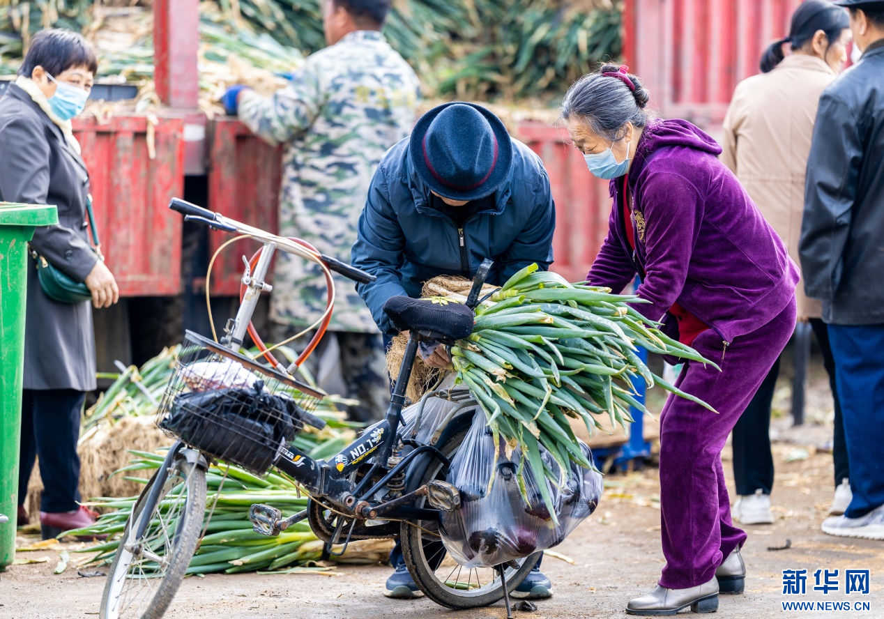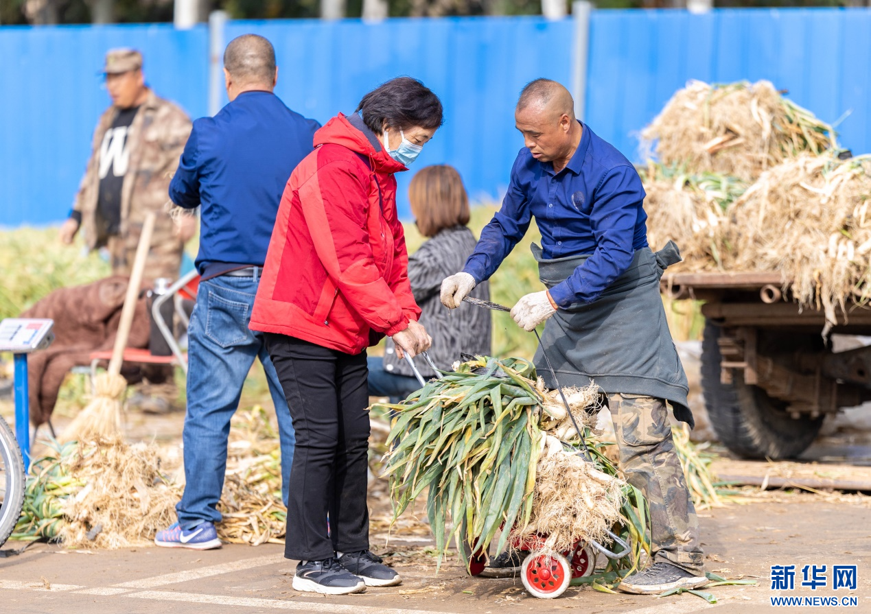 10月12日,呼和浩特市玉泉区美通农产品批发市场,市民在选购冬储大葱。新华网发(丁根厚 摄)