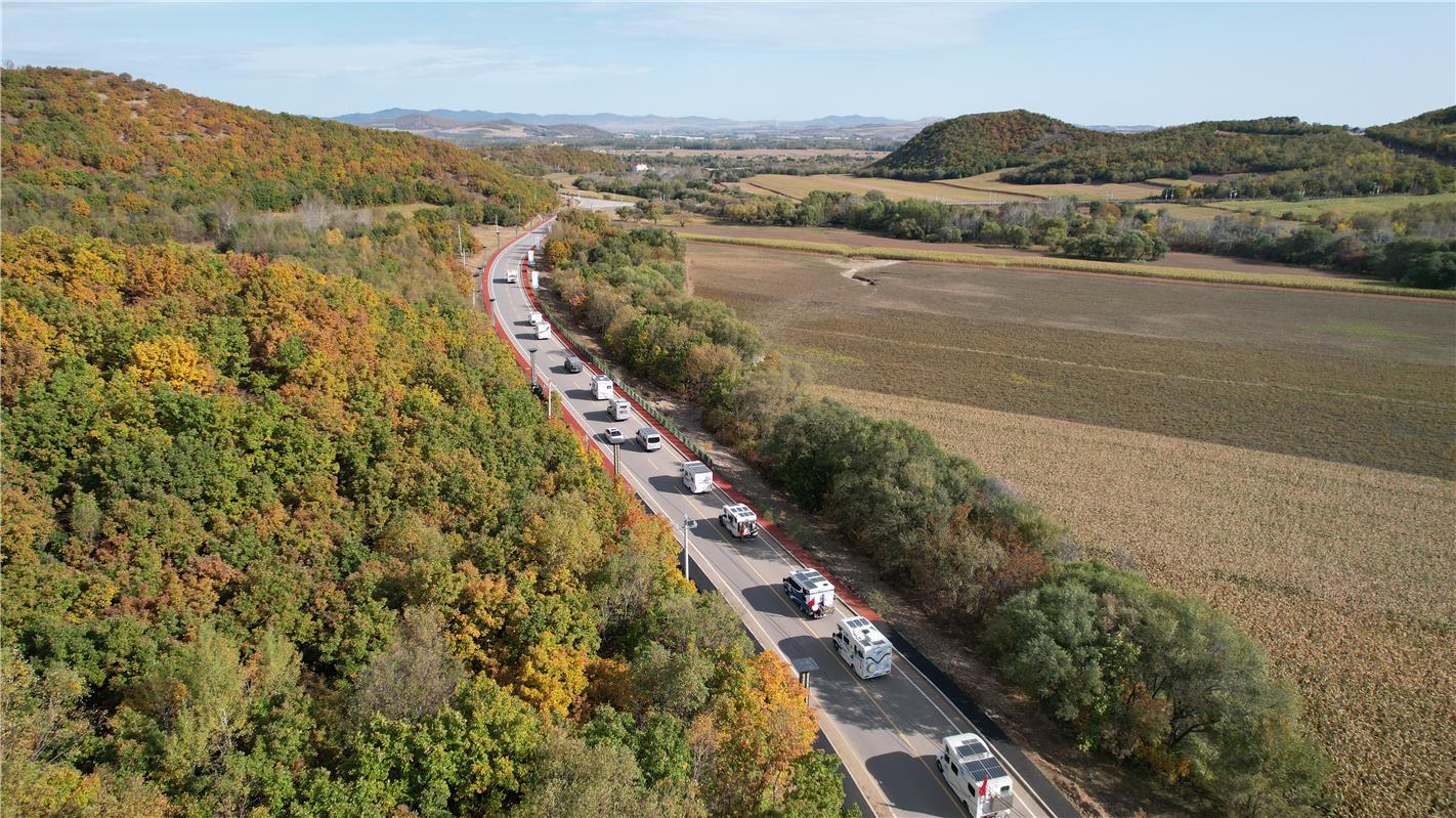 9月28日,扎兰屯金龙山滑雪场,自驾游车队车主挥手出发。