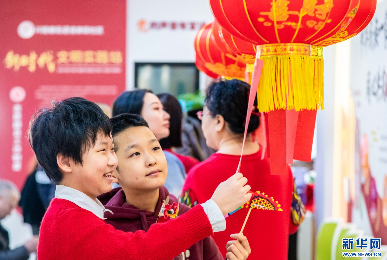 2月23日,社区居民在呼和浩特市玉泉区清泉街社区喜迎元宵节活动现场猜灯谜。新华网发(丁根厚 摄)
