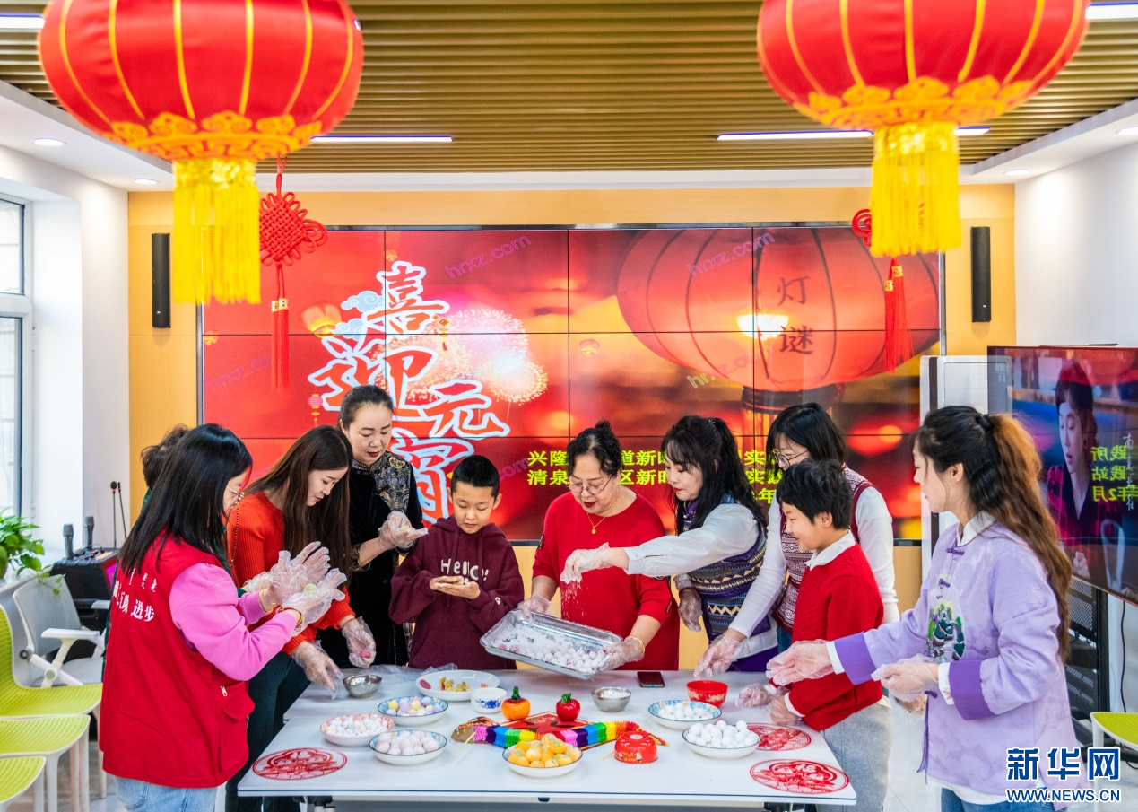 当日,内蒙古自治区呼和浩特市玉泉区清泉街社区举行“幸福北疆 团圆青城”—2024年花式闹元宵主题活动。社区志愿者和居民欢聚一堂,包元宵、做花灯、猜灯谜,共同体验传统年俗文化魅力,喜迎元宵节到来。