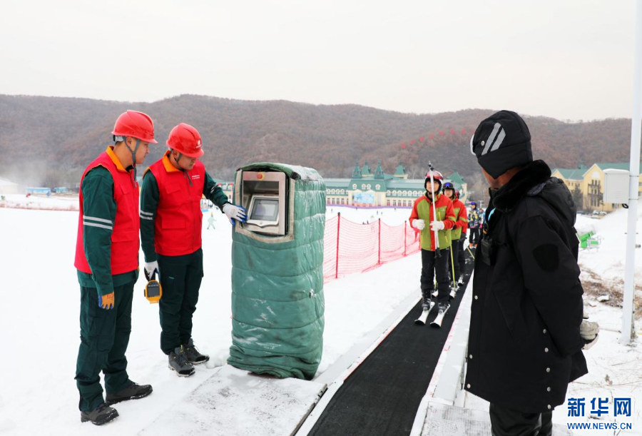 11月15日,在内蒙古自治区扎兰屯金龙山休闲度假旅游区,国网扎兰屯市供电公司青年志愿者进行用电巡检,助力冬季旅游。新华网发(王帅 摄)