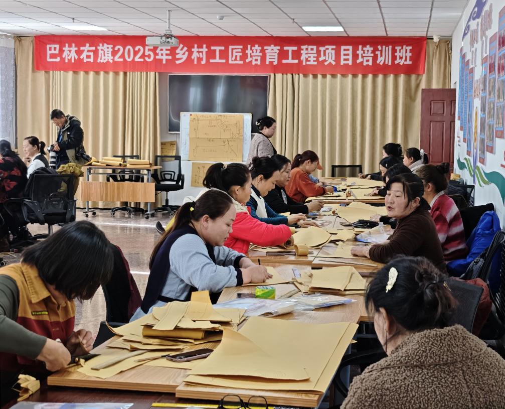 眼下,巴林民族手工坊大楼里正在举办巴林右旗2025年乡村工匠培训工程项目培训班,来自全旗各地的数十位学员兴致勃勃地学习服装设计、裁剪、缝纫及各种手工艺品制作技术。手工坊负责人说,巴林民族手工坊通过“集中训练、分岗历练、实践锻炼”三维培养体系,年实训学员500人次,已累计培育本土手工艺人才1200余人次。在内蒙古乃至全国传统工艺展、非遗技能大赛中,巴林民族手工坊有15人获得国家级奖项,23人获得自治区奖项。不久前,巴林右旗入选内蒙古自治区级民间文艺版权保护与促进试点地区。