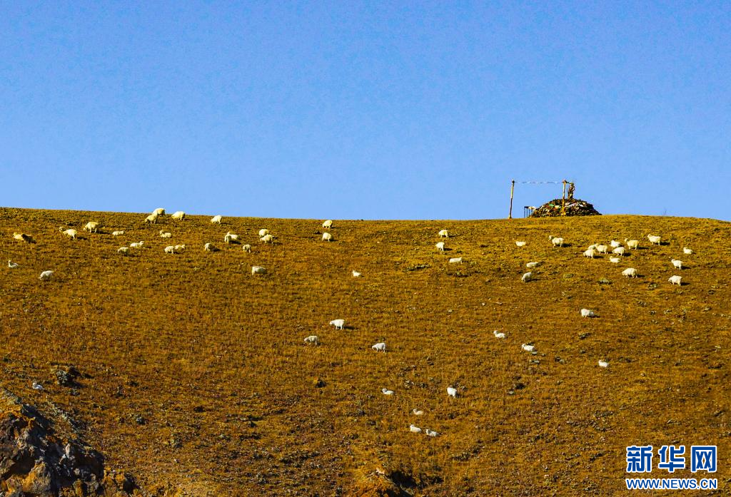 11月17日,羊群在克什克腾草原山坡上觅食。