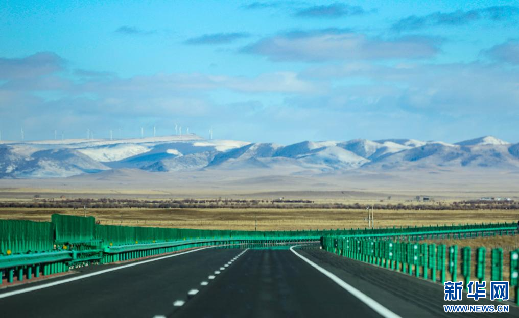 11月17日在公路上拍摄的克什克腾草原和群山。