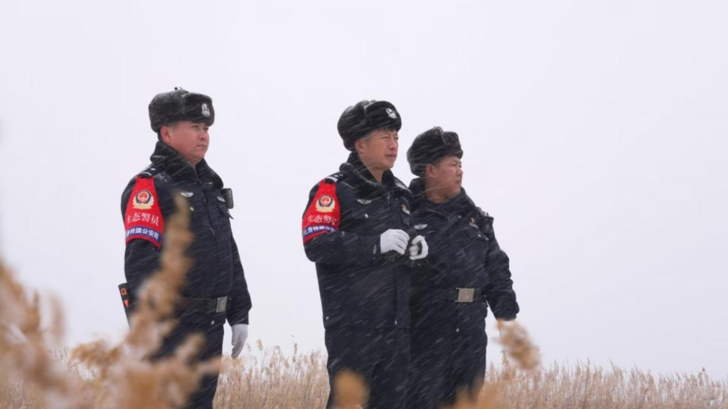 “蔚蓝的天空上仙鹤在飞翔,幽静的湿地里鸟儿在梳妆……”当熟悉的歌声在巡护车内响起,金亮和民警们在这个平凡却又意义非凡的岗位上,默默守护着这片土地。(任东月 刁博禹)