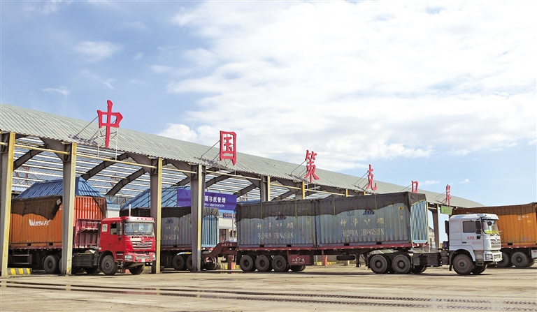 12月10日,入境货车在策克口岸有序通关。记者 孟和朝鲁 摄