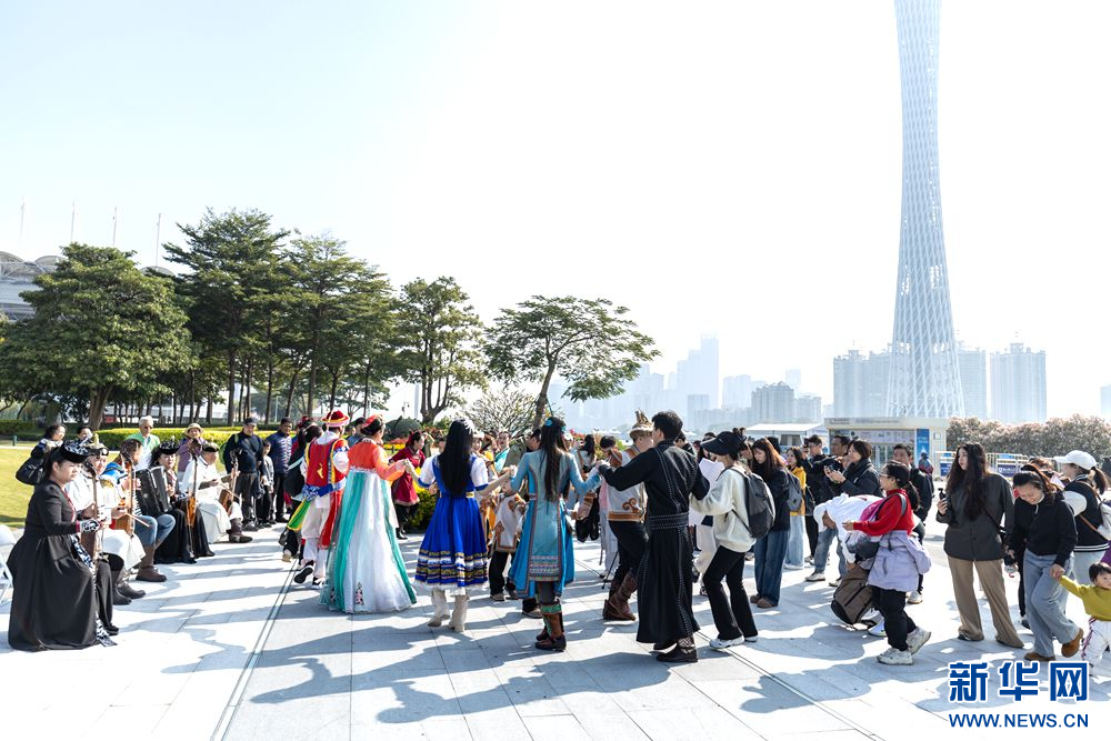 12月27日,内蒙古呼伦贝尔市乌兰牧骑队员在羊城广州为市民、游客献上了一场具有草原风情的文艺路演。乌兰牧骑队员们用柔美的舞姿、优美的旋律、嘹亮的歌喉与观众热情互动。据悉,本次文艺路演活动是“我和草原有个‘粤’定”——呼伦贝尔大湾区推介会的组成部分,旨在通过文艺表演向当地市民、游客展示呼伦贝尔独特的自然风光和文化底蕴。
