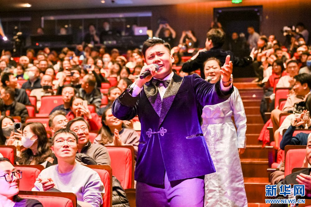 在音乐会现场,演员走入观众席与听众互动演唱。新华网发