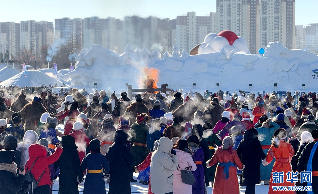 新华网呼和浩特12月30日电(李倩)冬至,-27 ℃。呵气成霜、睫毛凝冰,手机电量急速“跳水”。然而,在内蒙古自治区呼伦贝尔市海拉尔区,近千名游客围着篝火载歌载舞,用滚烫的热情直面严寒。