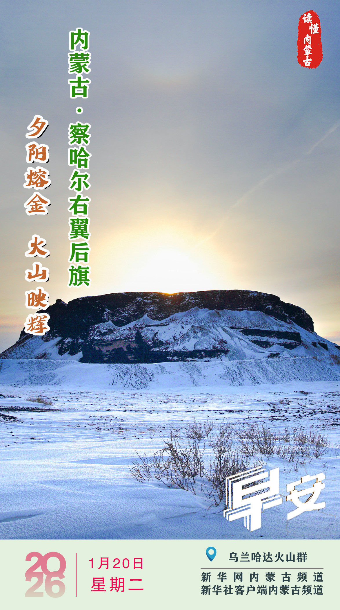 读懂内蒙古丨2026年1月20日 夕阳熔金 火山映辉 内蒙古察哈尔右翼后旗- 新华网内蒙古频道