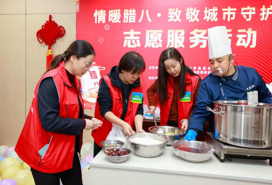 1月26日,内蒙古环投集团六个党支部联合呼和浩特市新城区五个直属部门党支部、迎新路街道和锦社区开展“情暖腊八・致敬城市守护者”主题党日活动。