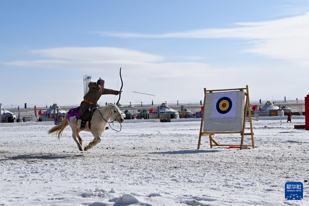 2月1日上午,草原上的气温低至零下十几摄氏度,寒意十足。位于锡林郭勒盟锡林浩特市的锡林郭勒那达慕风情园里却人声鼎沸、热闹非凡,一场精彩的赛马盛会在此举行。跑马射箭比赛现场,一名参赛选手跨马飞奔途中,取箭、拉弓、射击一气呵成,箭矢“嗖”的一声击中靶心,引来观众的阵阵掌声。