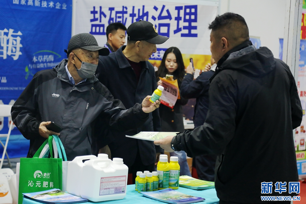 3月26日,在内蒙古国际会展中心开幕的第三十八届内蒙古农业博览会现场,养殖户在咨询、选购农资产品。新华网 石毅摄