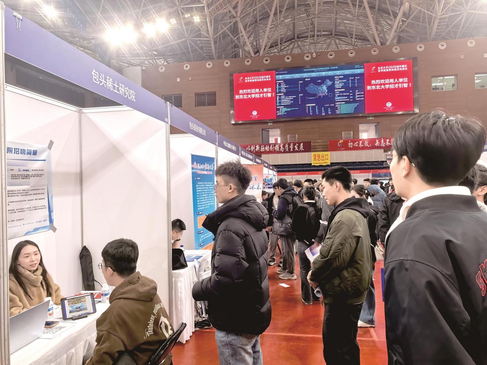 引才工作,早谋划、早行动方能占先机。3月7日,2026年包头市春季招才引智首场校园双选会在内蒙古科技大学体育馆火热启幕,正式吹响全市春季人才招引的集结号。活动现场,人头攒动,人气十足。80家市级重点企业整齐布展,集中亮出197个优质岗位、1317个人才缺口,岗位全面覆盖稀土新材料、高端装备制造、新能源、现代服务业等全市主导产业领域,每一个岗位都精准对应着产业发展的现实需求。
