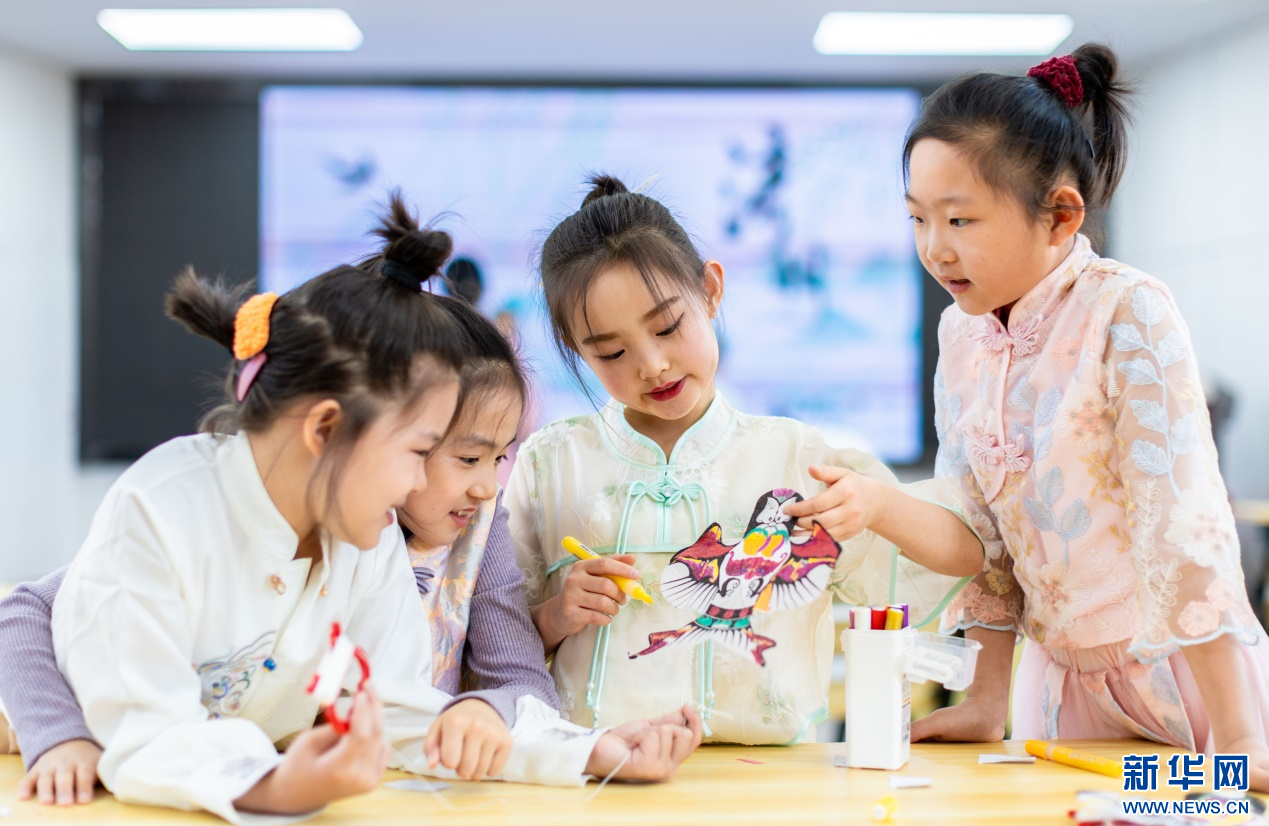 4月2日,在呼和浩特市玉泉区清泉街小学清明节主题活动现场,学生们在彩绘面塑“寒燕”。新华网发(丁根厚 摄)