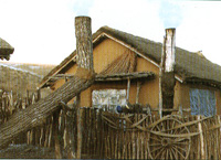 居住环境: 一般来讲,屯落的北面为山林,东、西、南三面是开阔的草甸子,屯落位于山的阳坡或岗地。靠近江河。达斡尔族一般以同姓聚居一屯为主,因为 从全屯整体出发,统一规划,所以房舍院落园田排列井然有序,“介”字型草房一律朝南,一般一户为两间、三间或五间房。达斡尔族住房素重采光,西屋南面三扇窗,西面两扇窗,东屋南、东面各两扇窗,房门两侧各一扇窗。为使窗户结实、透明,用盐水豆油搅匀喷在窗纸上。屋内南、北、西三铺炕连接在一起,构成“弯子炕”,家庭成员及其客人的铺位都有相对规定的位置。